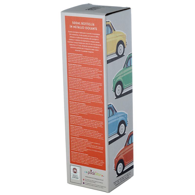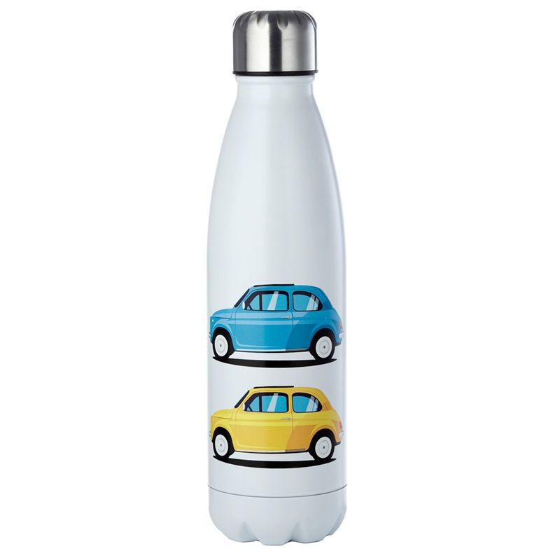 Fiat 500 Retro Återanvändbar Värmeisolerad Flaska i Rostfritt Stål för Varm & Kall Dryck 500ml