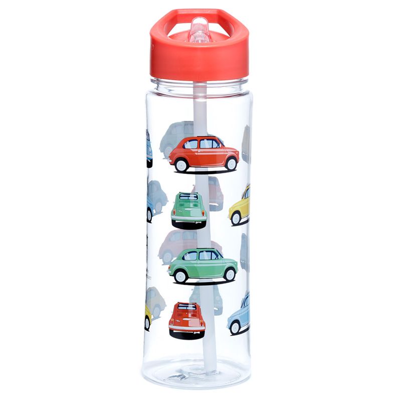 Splitterfri Plast Återanvändbar 550ml PVC Vattenflaska med Sugrör - Retro Fiat 500