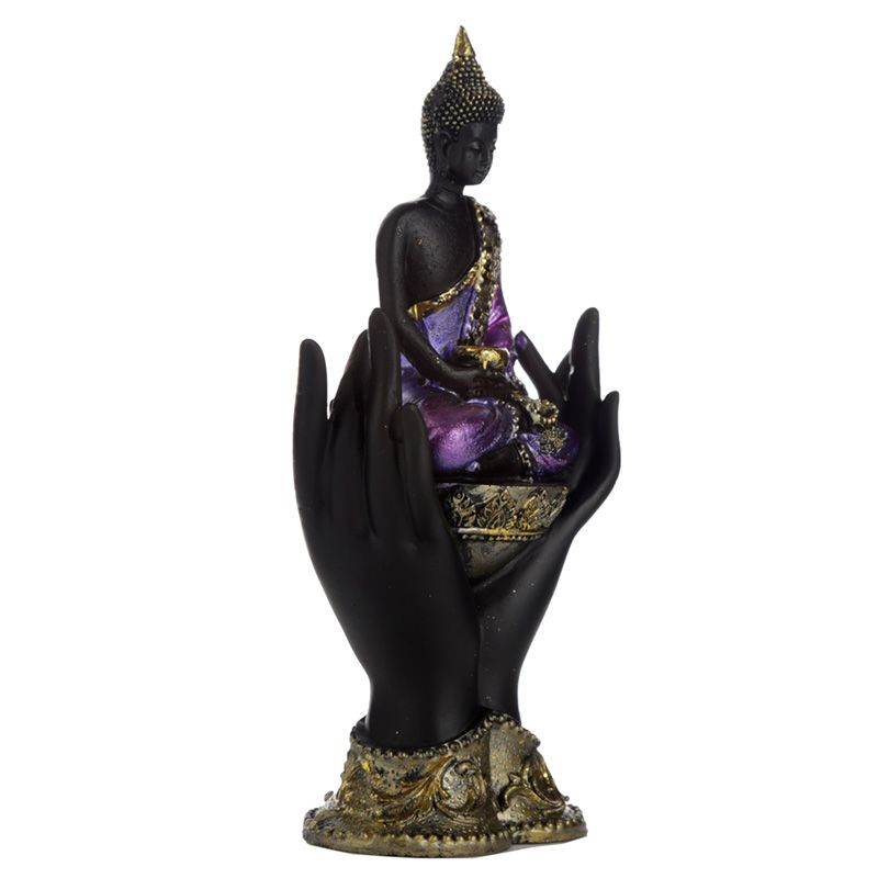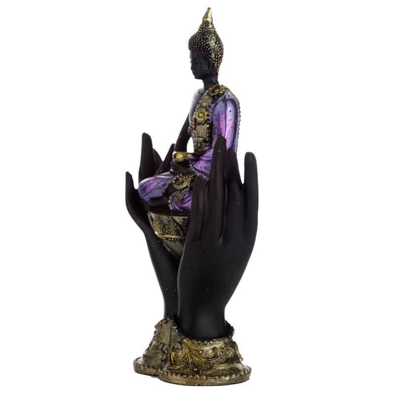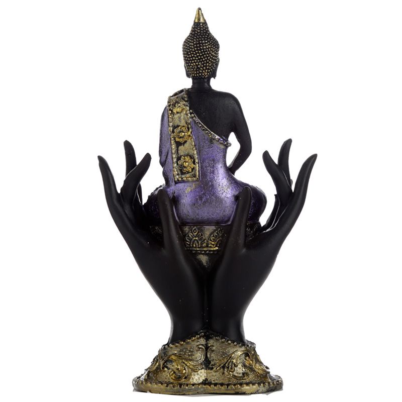 Lila, Guld och Svart Thai Buddha Sittande i Händer