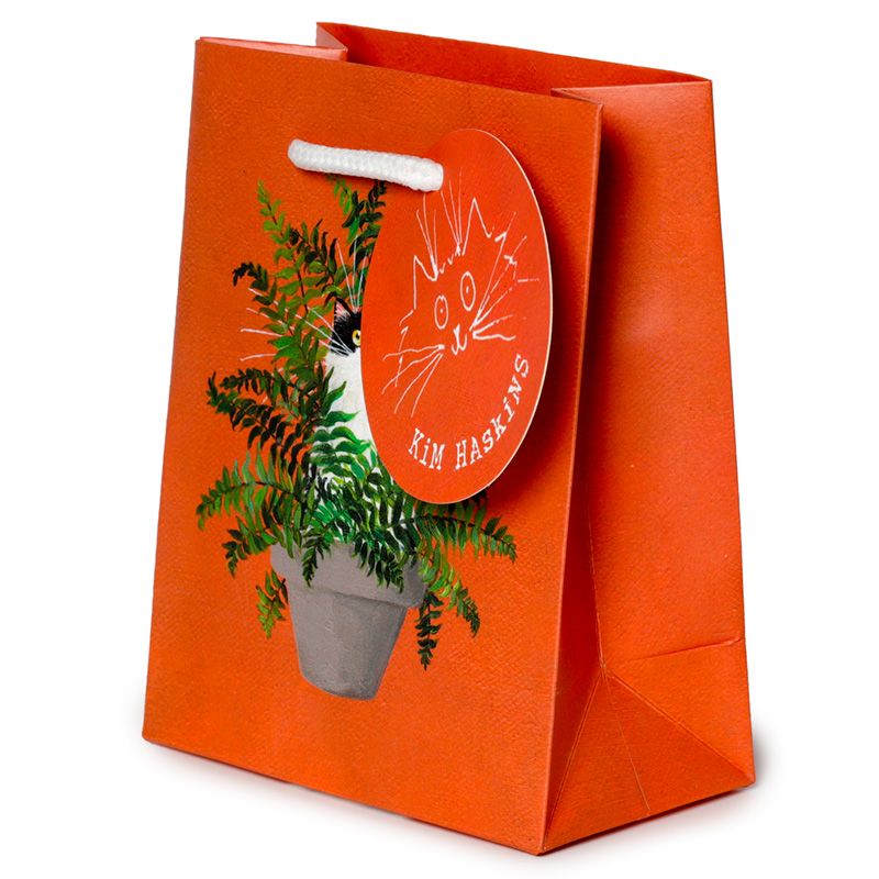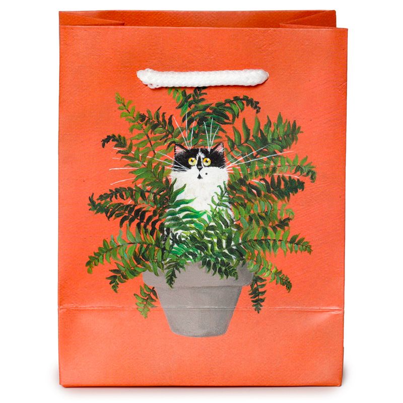 Kim Haskins Floral Cat Katt i Ormbunke Röd Presentpåse - Liten