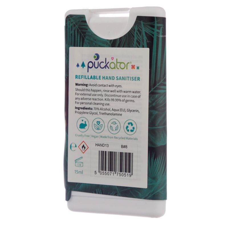 - Påfyllningsbar: Ja - Lyft klämman som skyddar spraydelen och dra ut klämman. Den kan sedan fyllas på genom hålet och klämman kan sättas tillbaka.