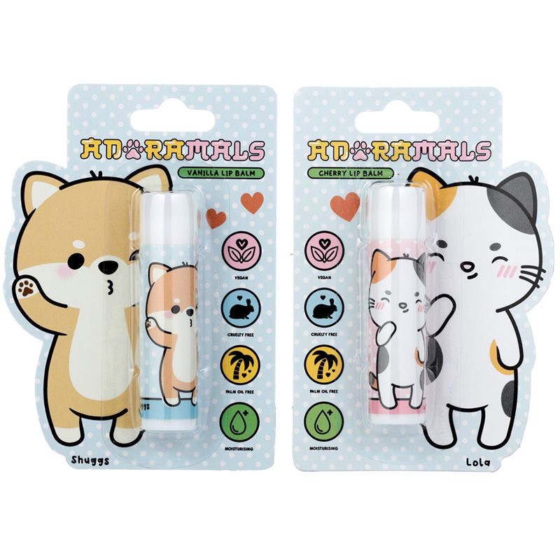 Lola the Cat och Shuggs the Shiba Inu Hund Adoramals Läppbalsam Sticka - Körsbär (Lola) Vanilj (Shuggs)