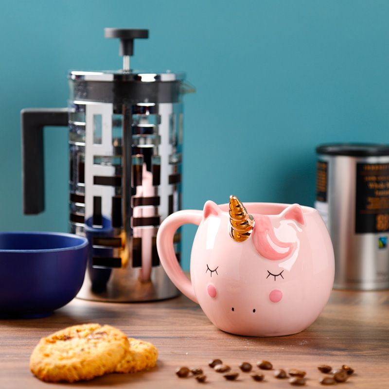 Rosa Förtrollade Regnbågar Enhörning Formad Keramikmugg