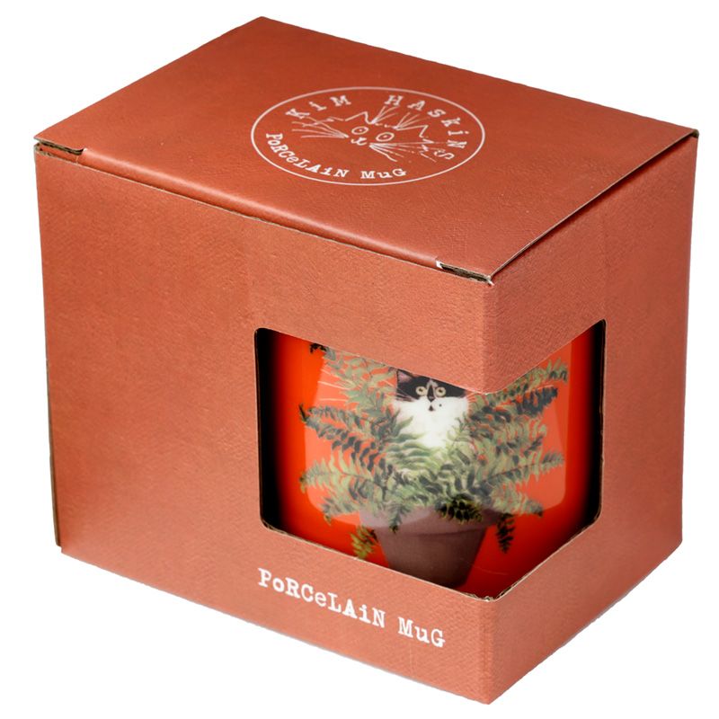 Kim Haskins Katt i Växtkruka Röd Porslinsmugg