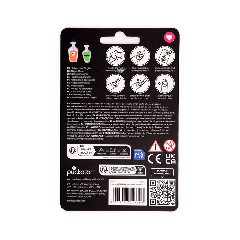 https://se.puckator.xyz/nail167-spooky-sjaelvhaeftande-nagelstickers.htmlNAIL167Spooky Självhäftande Nagelstickers<p>Spooky Självhäftande Nagelstickers</p><ul><li><strong>Material:</strong> Plast</li><li><strong>Säsong/Högtid:</strong> Halloween</li></ul><p><strong>Produkt Resurser:</strong></p><ul><li><strong>Vill du veta mer om hur du köper från Puckator? </strong> Då borde du läsa våran <a href="/advice-centre" target="_blank" title="Puckator Sverige Kundens Köpguide">Kundens Imformations Guide.</a></li></ul>https://se.puckator.xyz/media/catalog/product/N/A/NAIL167_001_1753269973.jpg6.55instock6.556.5500Puckator000https://se.puckator.xyz/media/catalog/product/N/A/NAIL167_001_1753269973.jpg1754518083182961829818955/Nagelvård & Tillbehör/Halloween Dekorationer & Presenter/Nyheter/Åter i lager/Tillbaka på lager2025-02-14T06:51:11+0000