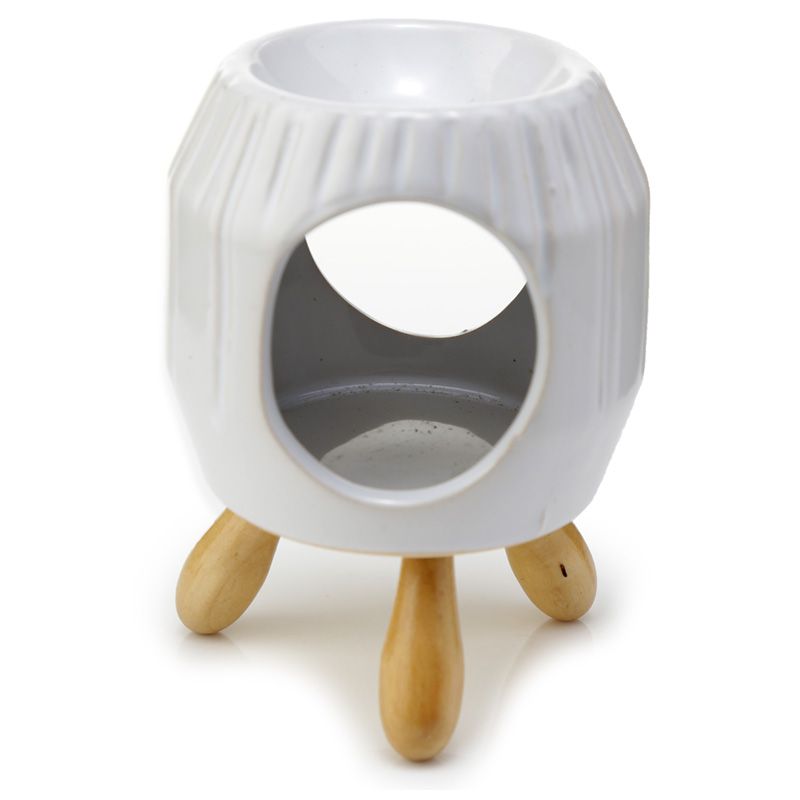 Eden Abstract Räfflad Vit Aromalampa i Keramik med Fötter