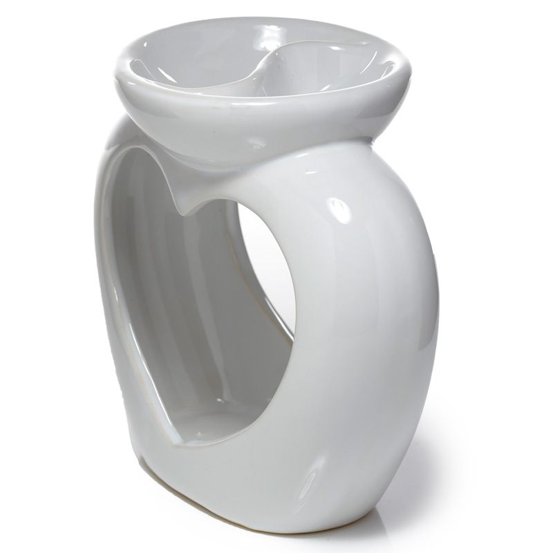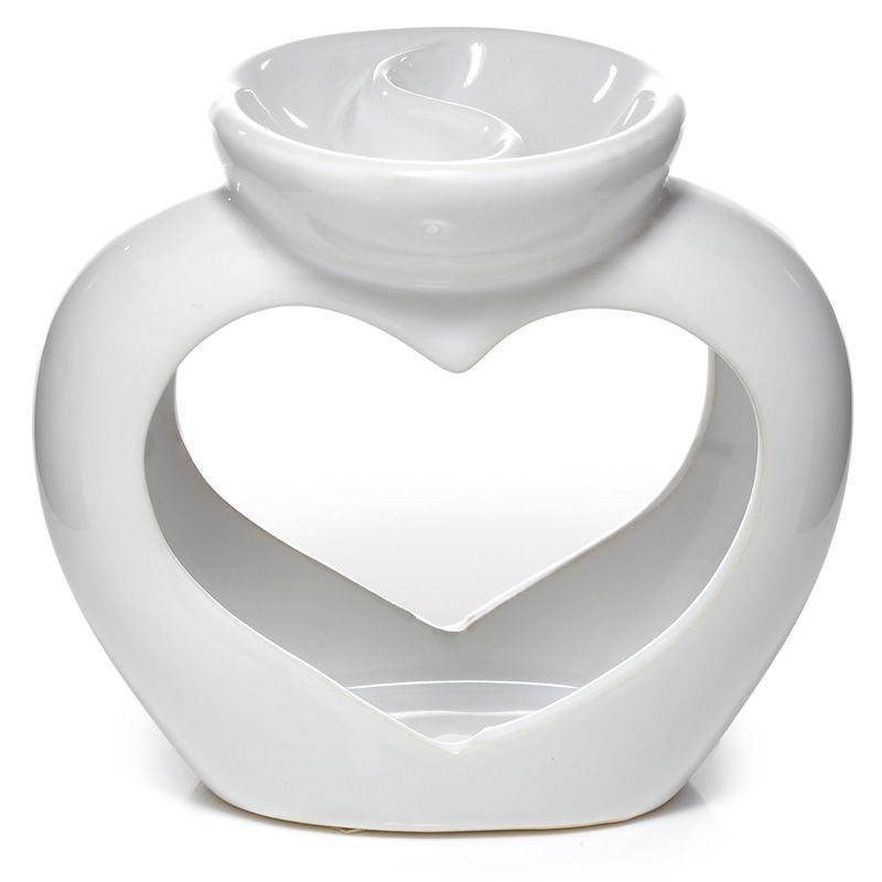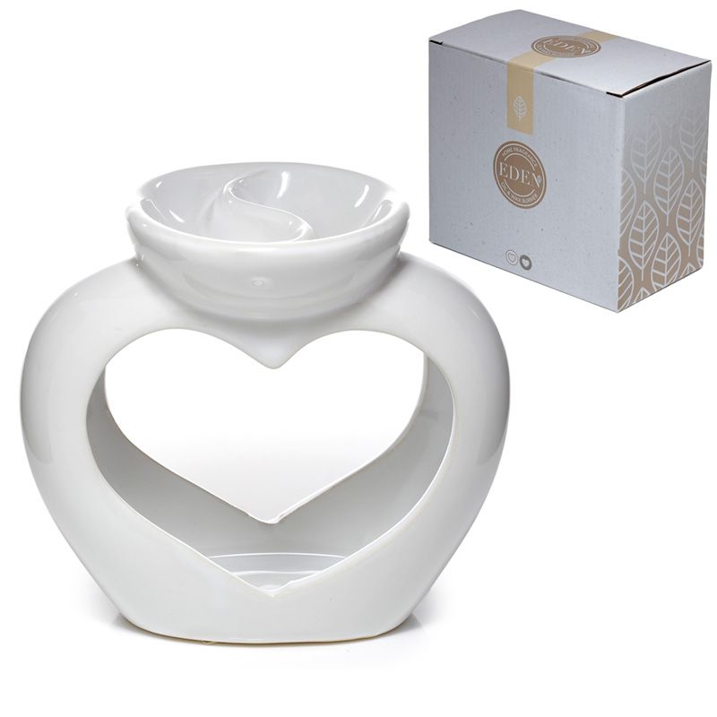 Eden Vit Hjärtformad Aromalampa i Keramik för Olja & Vax med Dubbla Fat