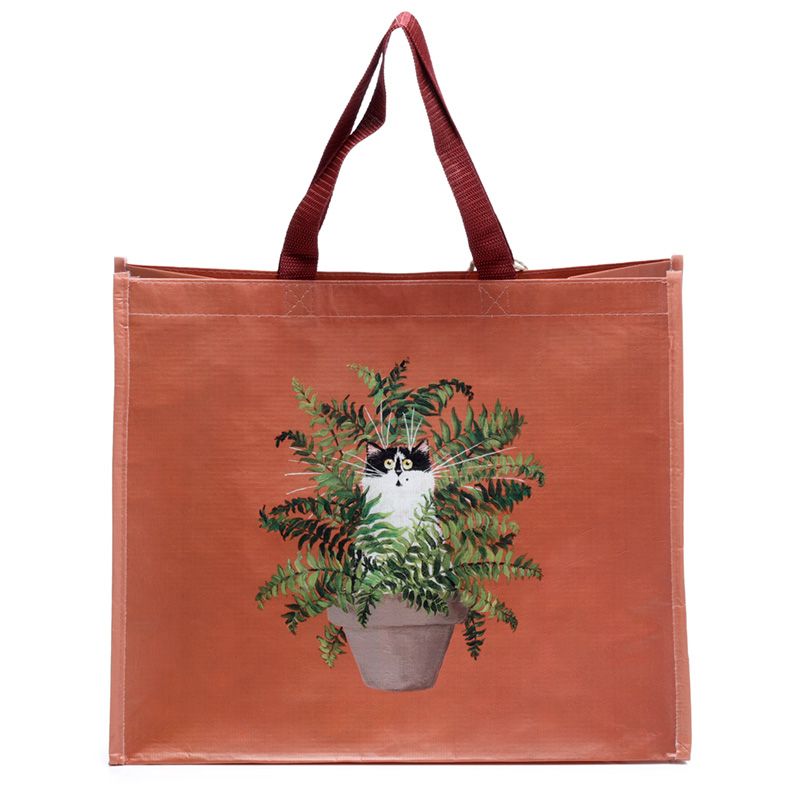 Kim Haskins Floral Cat Katt Ormbunke RPET Återanvändbar Shoppingväska