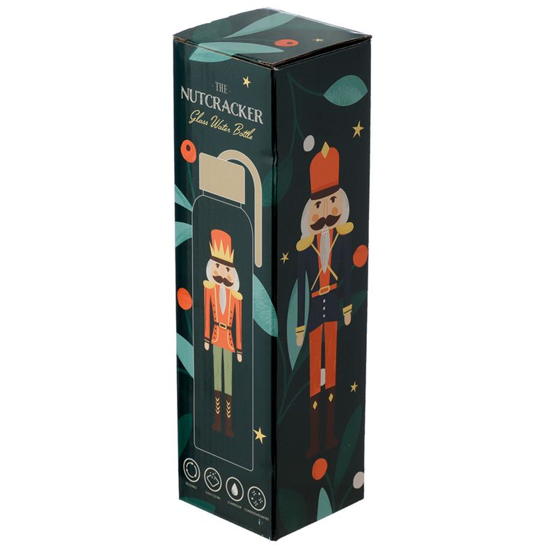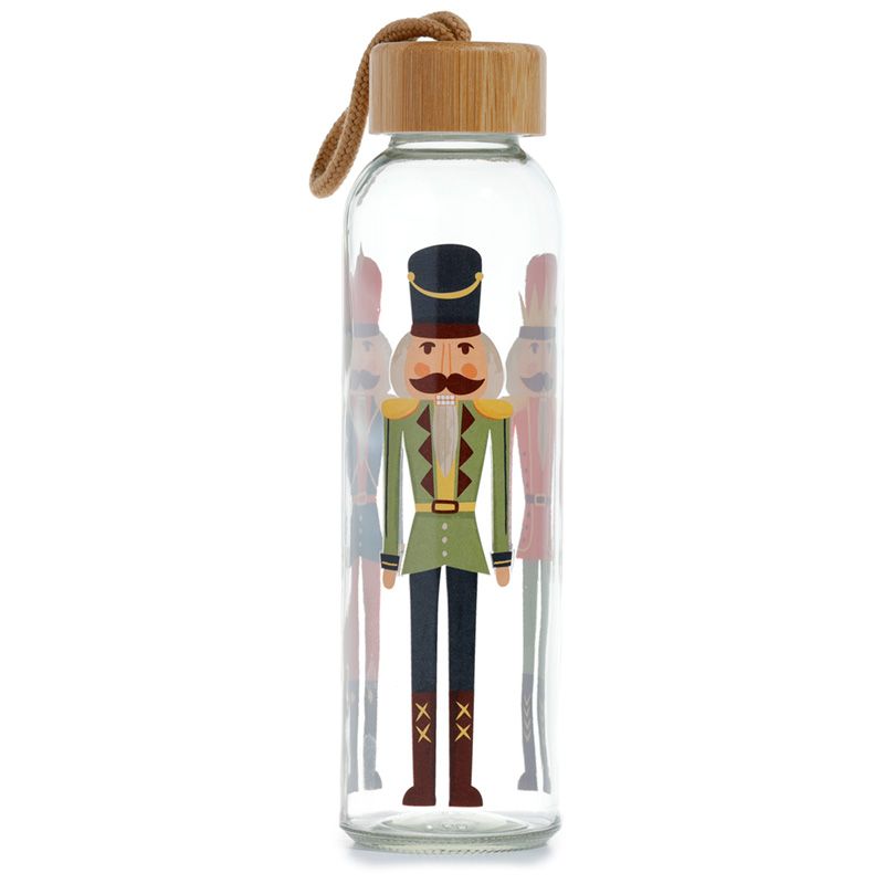 Jul Nötknäppare 500ml Återanvändbar Vattenflaska i Glas med Bambulock