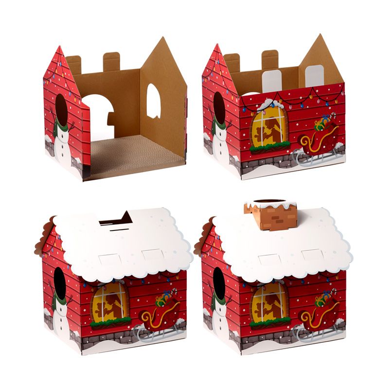 Jul Santa's Grotto Lekhus för Katter i 100% Kartong